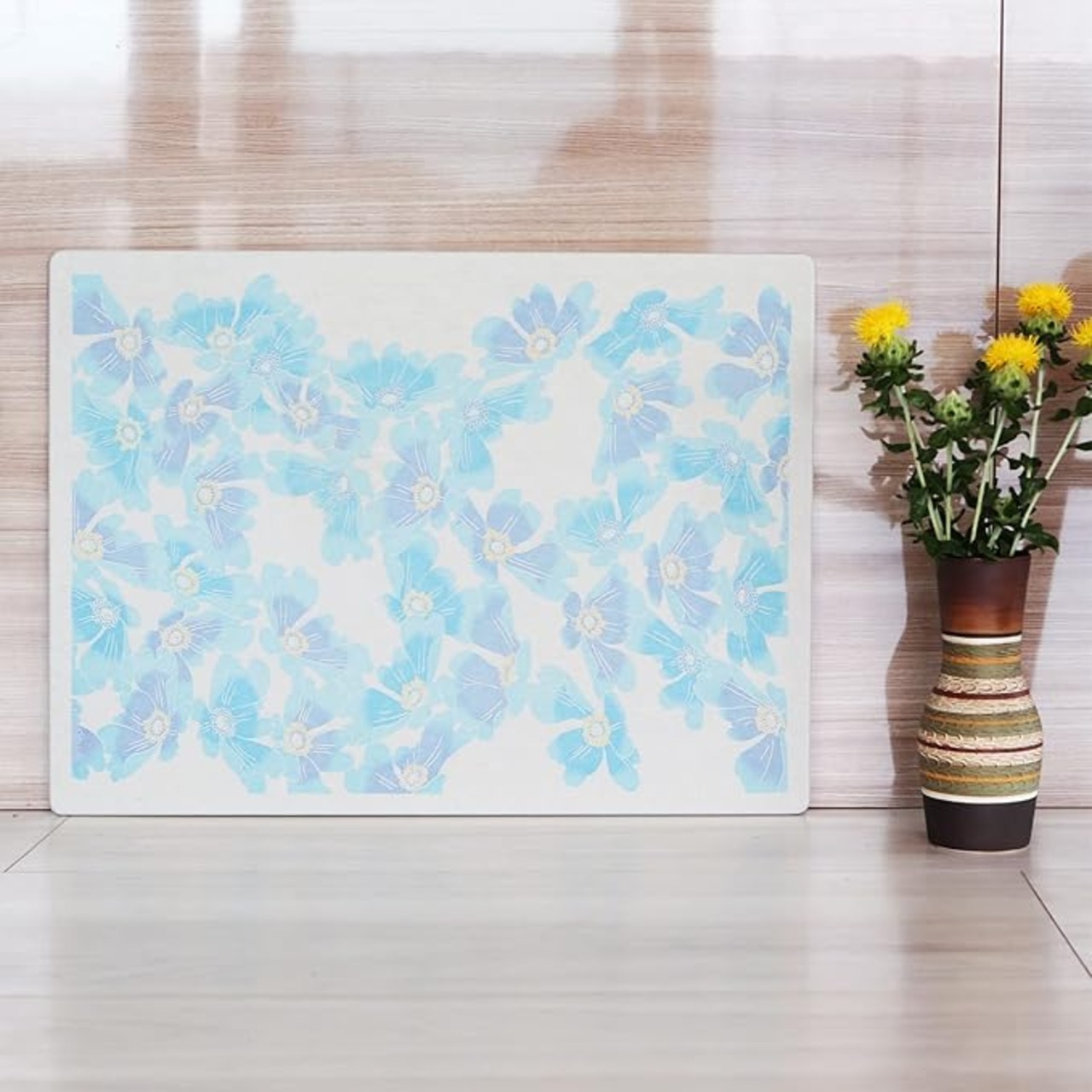 日本製 珪藻土 なのらぼ 足快バスマット 加賀友禅 吸収 速乾 バスマット 風呂 浴室 (レギュラー ハナミズキ みず色 57.5cm 42.5cm 0.9cm)
