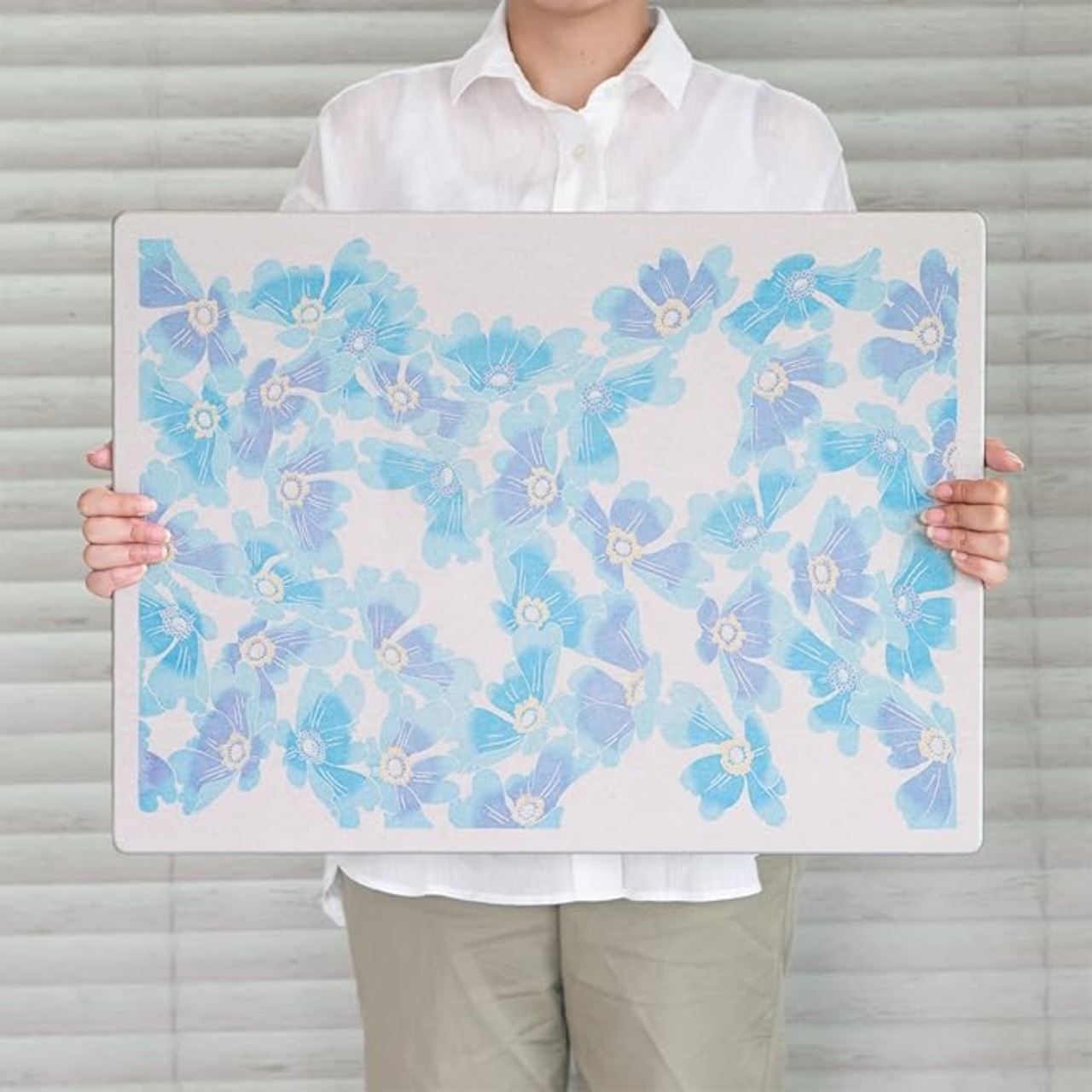 なのらぼ 足快バスマット 加賀友禅匠シリーズ レギュラーサイズ ハナミズキ (みず色)