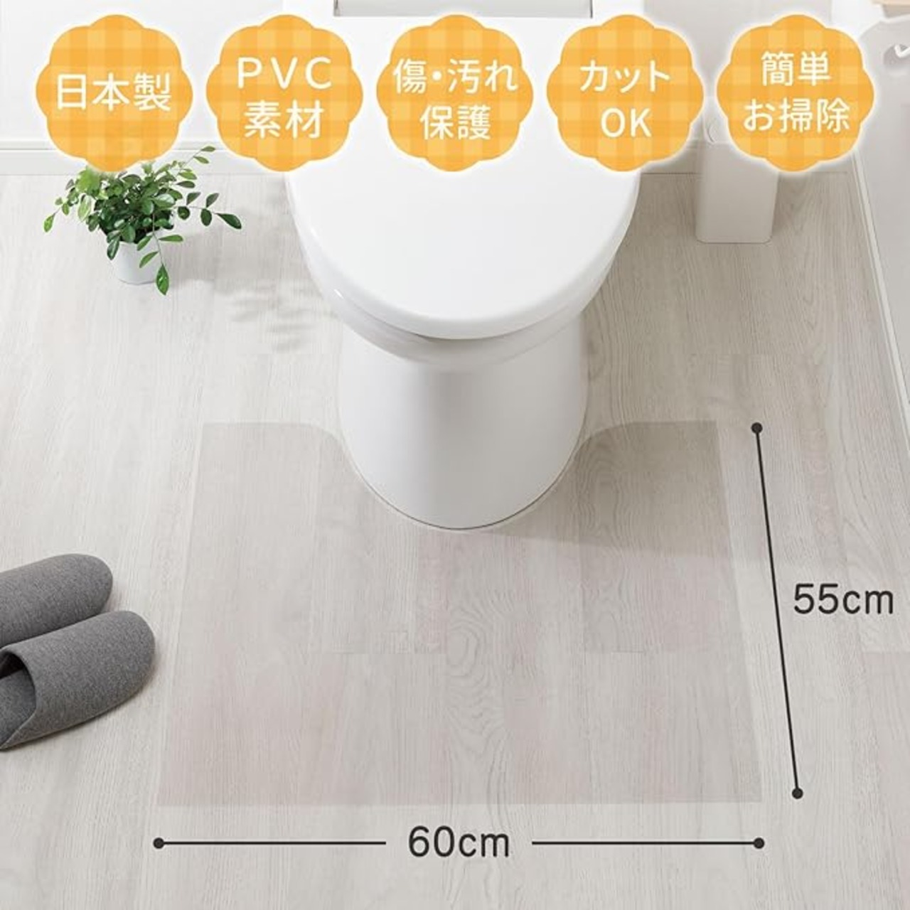 【質の高い日本製】 ベルカ(Belca) 透明マット トイレマット 55cm 幅60 奥行55 厚さ0.08cm クリア保護マット キズ 汚れ 防止 お手入れ簡単 カットOK 床暖房対応 日本製 TM60-55-1E