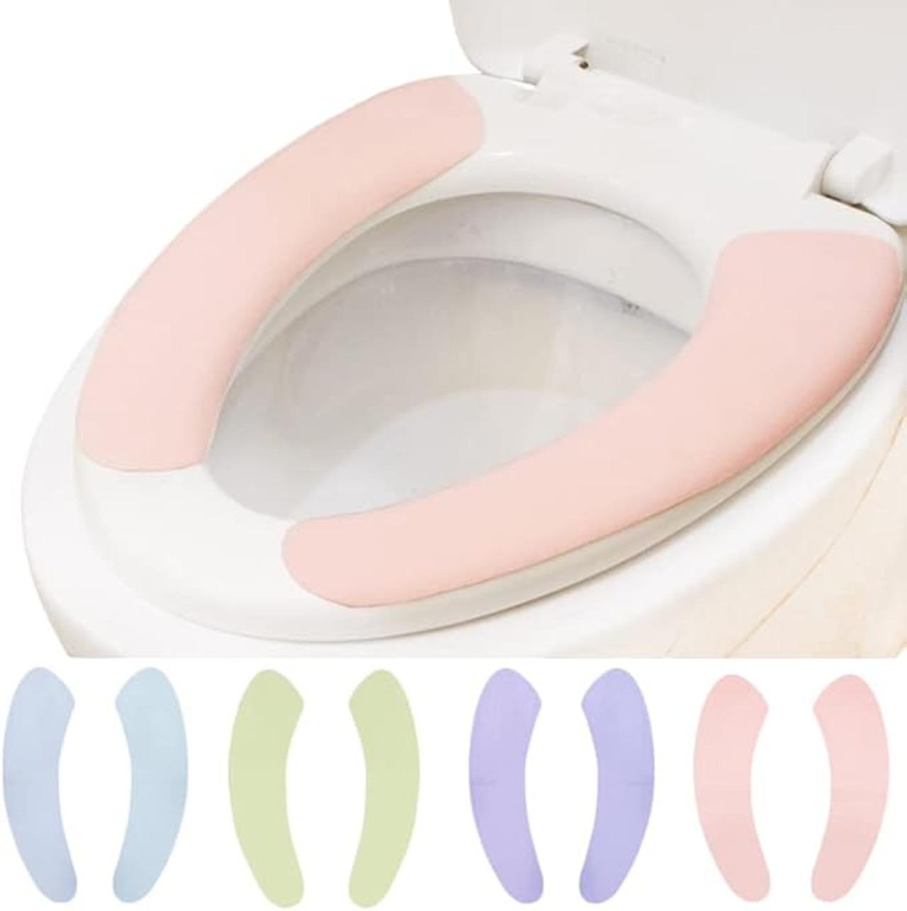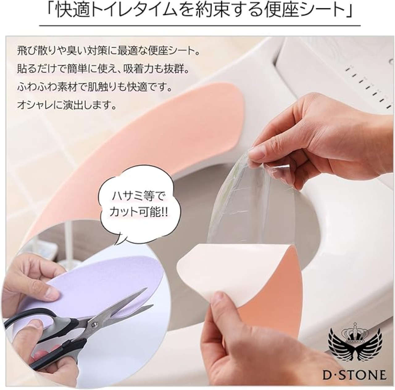 5 トイレ掃除の手間が省ける!ずれないふんわりタイプの便座シートです。「商品内容」貼るタイプの便座シート:12組24枚セット カラー:ブルー、ピンク、グリーン、パープル(全4色の各3組6枚セットずつ) サイズ:長さ37.5cm、幅10cm 備考:ハサミ等でカット可能。丸洗いもOKです。