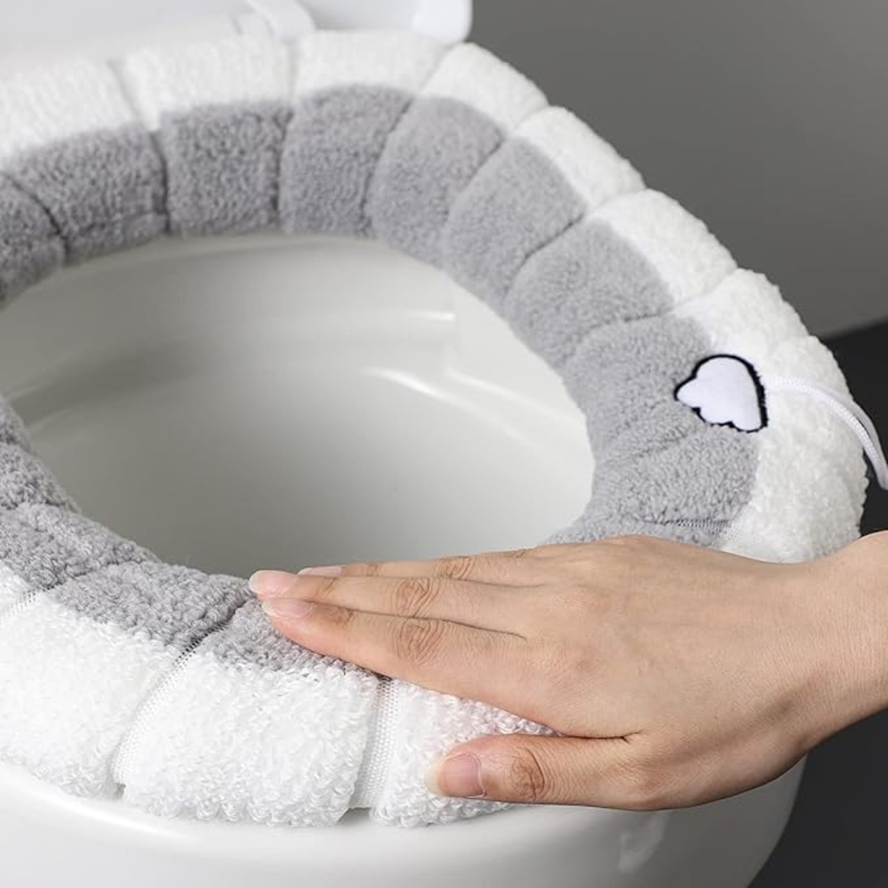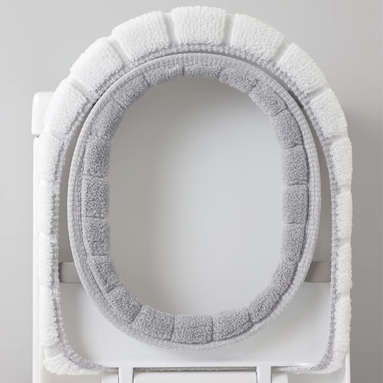 便座カバー トイレ便座カバー 厚手 トイレカバー トイレ用品 ソフト ふわふわ トマット便器マット 伸縮性 U型便座 O型便座 V型便座 通用型 厚手 便座クッション 便座シート (灰+白)