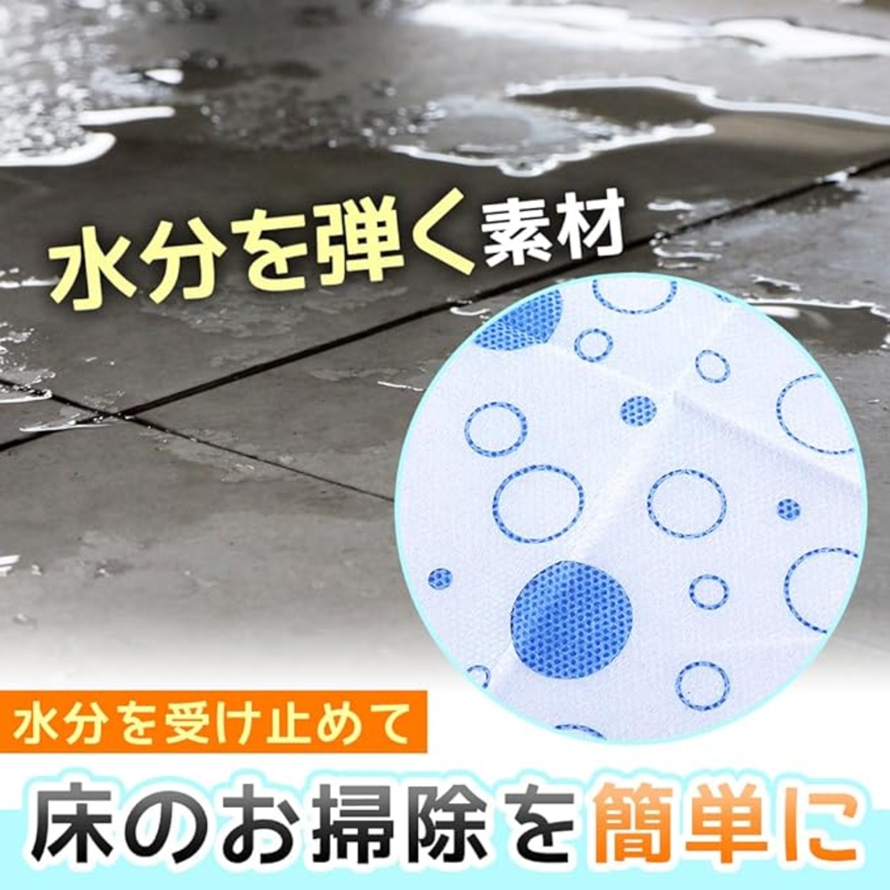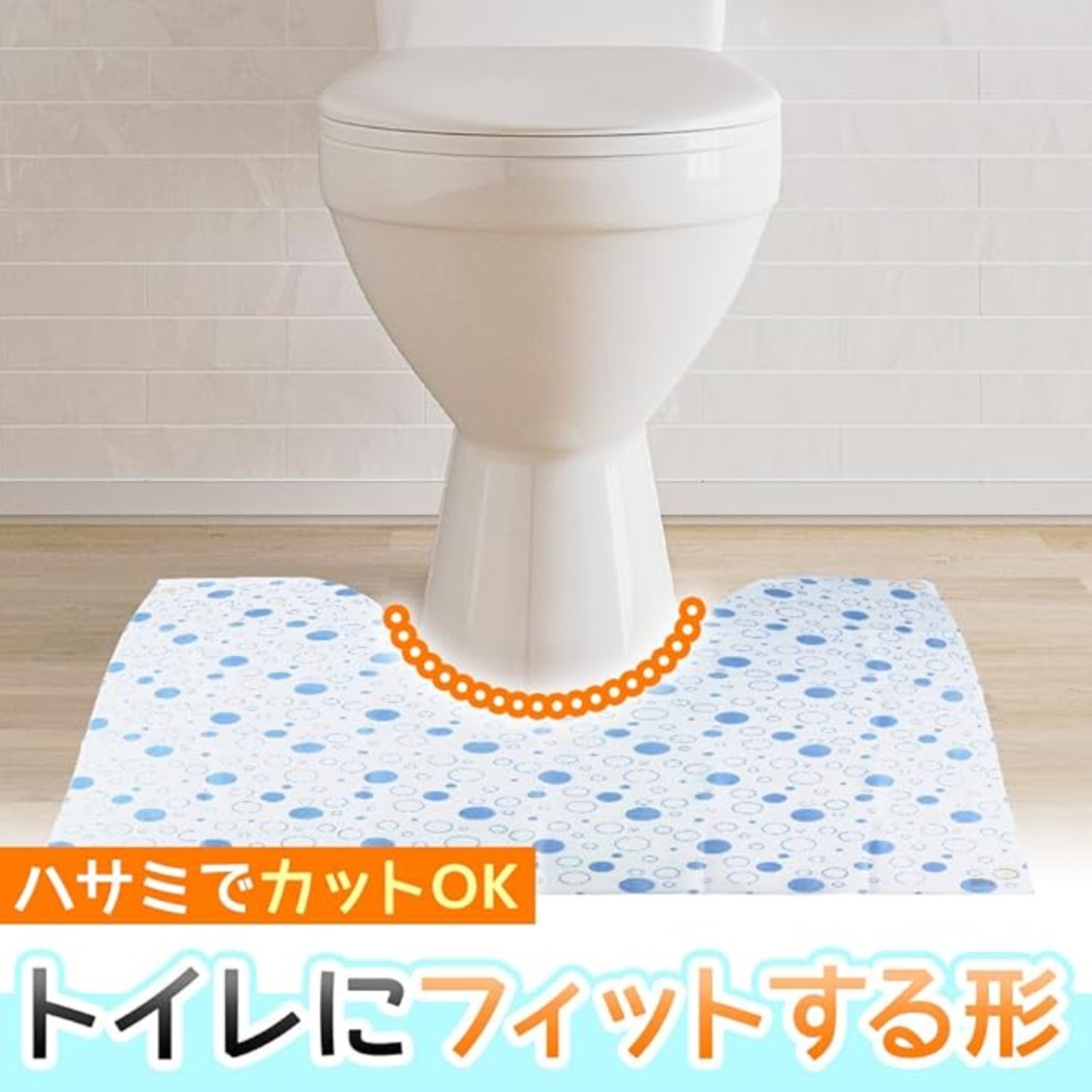 床にトイレマットを敷くことで、万が一トイレに失敗したり床に跳ねた際の掃除量を最小限に抑えます。使用後はトイレマットを剥がしてそのまま捨てるだけなので処理に手間がかかりません。
