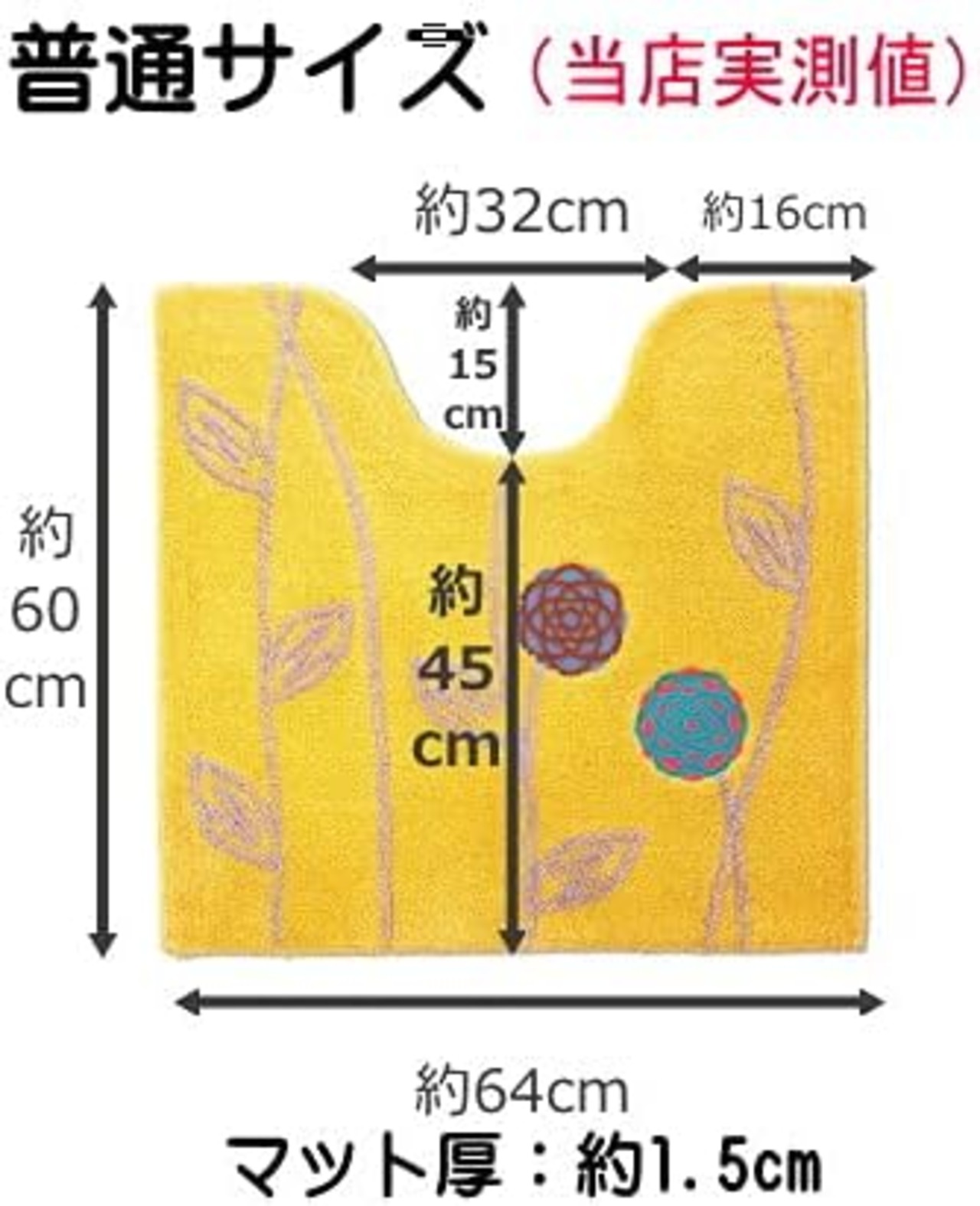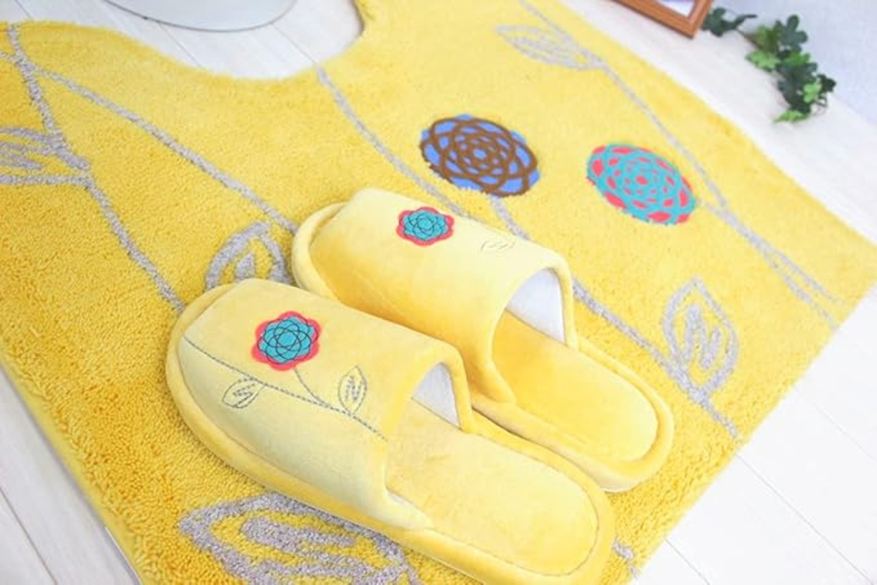 風水で、黄色は金運を良くするといわれています。 黄色が鮮やかなトイレマットで金運を呼び込みましょう! ●洗浄暖房便座用ふたカバー トイレマット3点セット。 ●丸洗いができるのでいつも清潔にお使いいただけます。 ●ナチュラルなテイストを表現したトイレタリー。 ●花の茎には綿糸を使い、素材感の違いが暖かさを表します。 ●刺繍のモチーフは切り絵のお花をあしらいました。 ※メーカー・ブランド・名称:オカ エトフ トォワイエロー ※セット内容 1:洗浄暖房便座用ふたカバー(約42 40cm) 2:トイレマット(約60 64cm) 3:スリッパ (約26 21.5 7cm) ※素材:ふたカバー/トイレマット(アクリル90%、綿10%) ※当商品は衛生商品ですので、お客様都合による返品をお請けできません。 ※適合サイズ: ◎ お使い頂けます。 40~46cm / 〇 奥までかかりませんが装着可能です。 47~52cm (フタ長さ+前部厚) ※四い形状のフタには装着できません。(アラウーノなど) ※自動開閉機能付きのトイレでは自動開閉機能はお使いになれません。 ※ 【お洗濯をする場合のご注意点】 ・乾燥機はご使用にならないで下さい。(熱により変形・損傷の恐れがあります)・柔軟剤や漂白剤はご使用にならないで下さい。・ドラム式などの一部の形式の洗濯機はご使用できない場合があります。洗濯機の取扱説明書をよくご確認の上、洗濯して下さい。 ・家庭用洗剤をご使用の上、洗濯機での丸洗いは洗濯ネットをご使用下さい。 ・初めは多少毛が抜けますので、他の物とは別にして下さい。・この製品に使用しているゴムは直射日光に弱い性質があります。必ず陰干しにしてください。 ●当商品は、通販用梱包の為、フタカバーの台紙を取り外しております。
