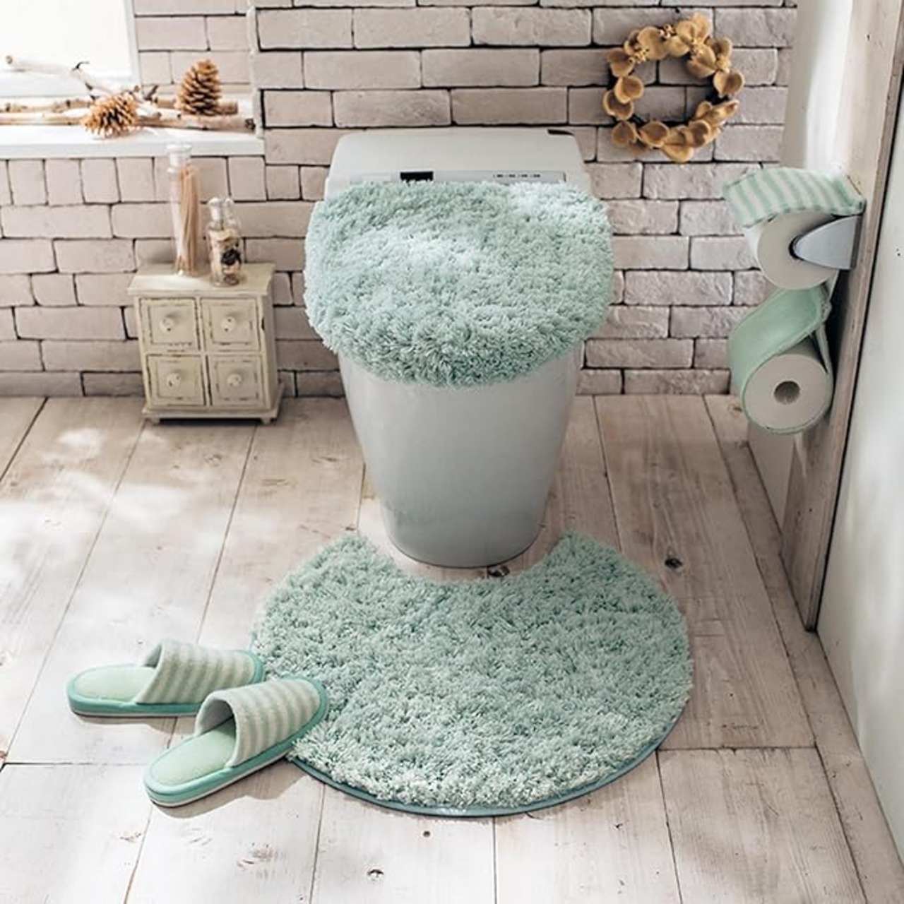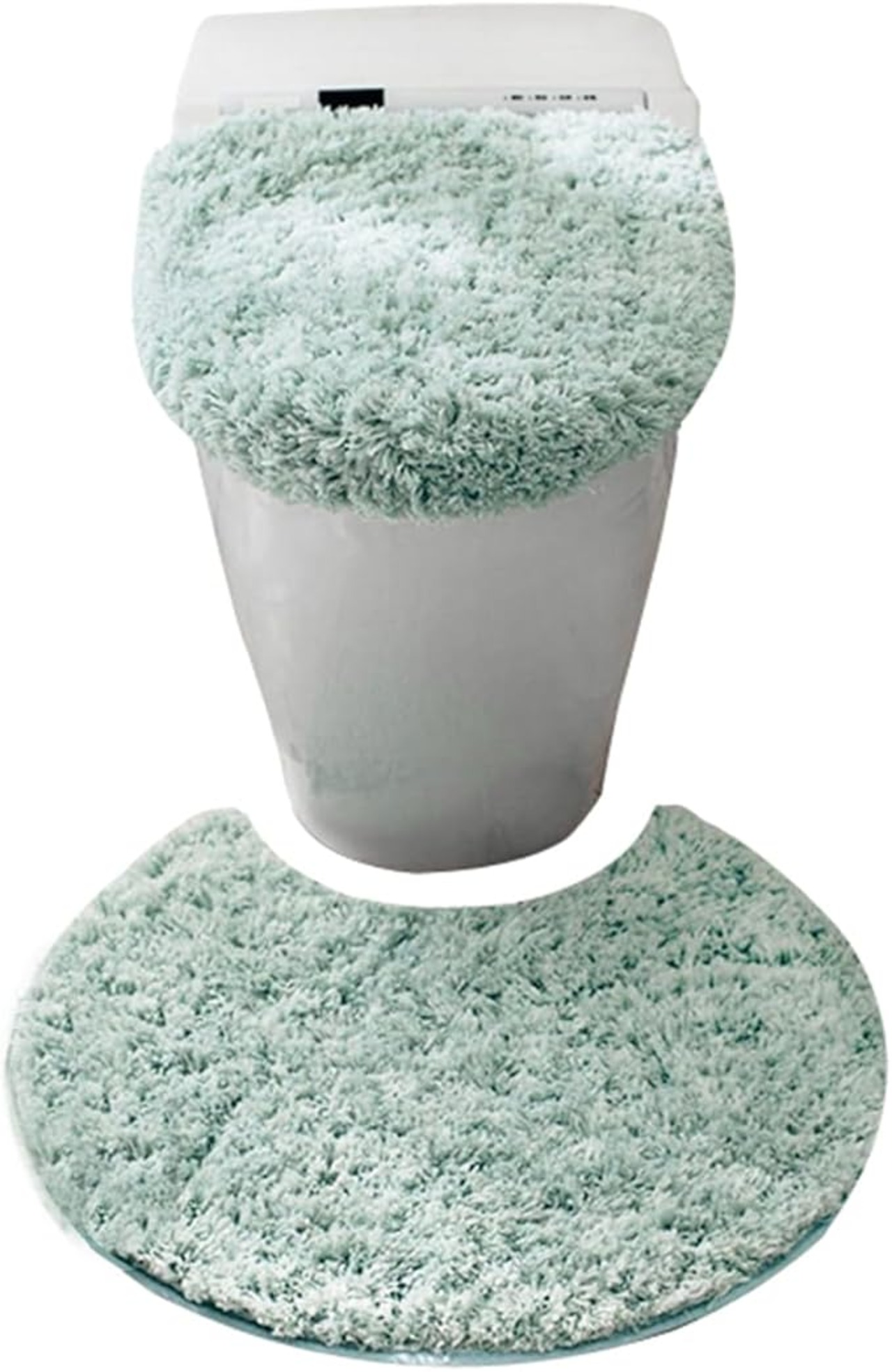 トイレマット・ふたカバー トイレ・便座シート 3点セット 円形 無地 トイレマット セット おしゃれ 可愛い ふわふわ 滑り止め 抗菌 防臭 暖かい洗える 白 ブルー -2