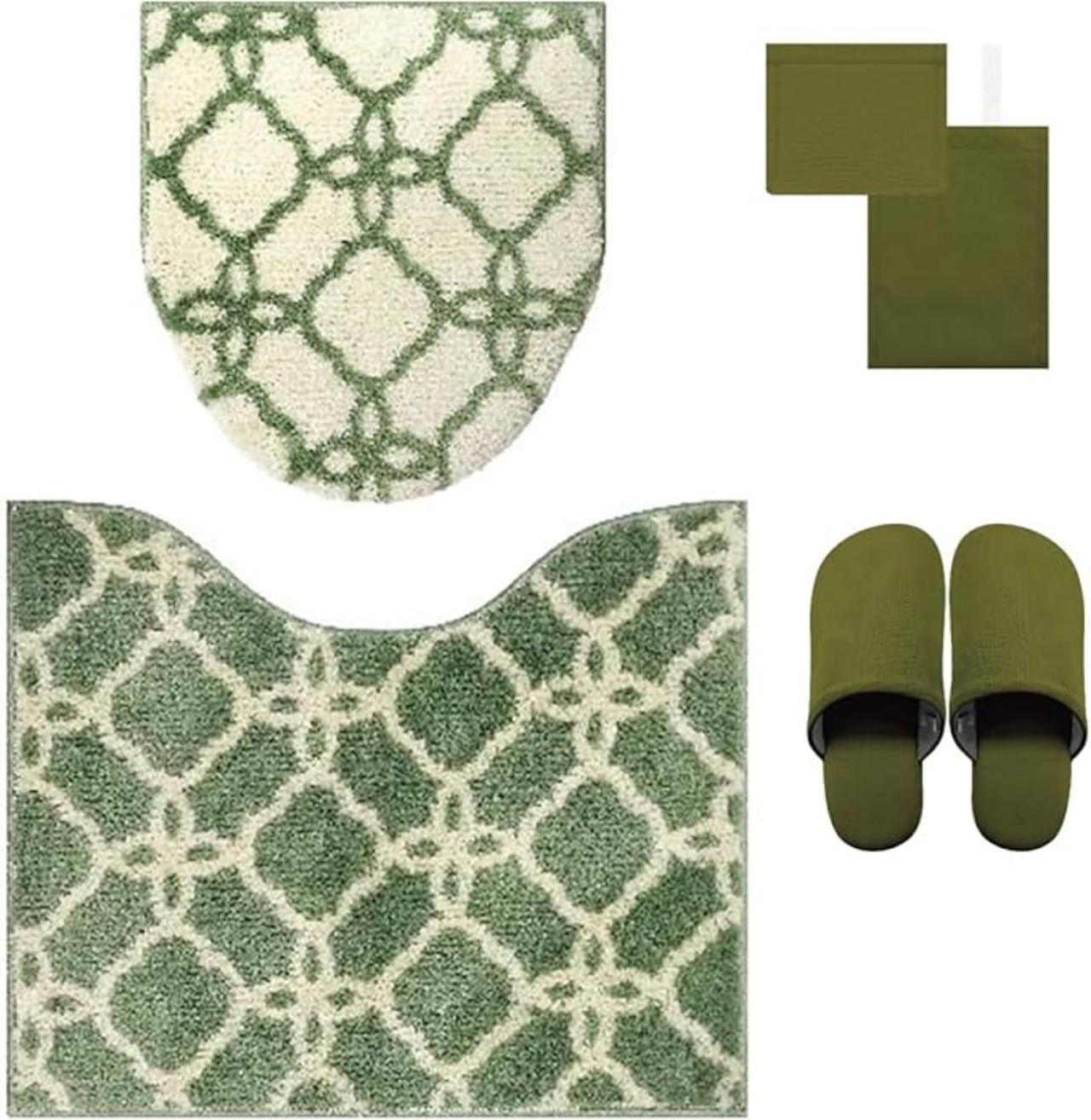 トイレマット・フタカバー:ソポ ゼリージュ スリッパ・ペーパーホルダーカバー:ナチュラル グリーン