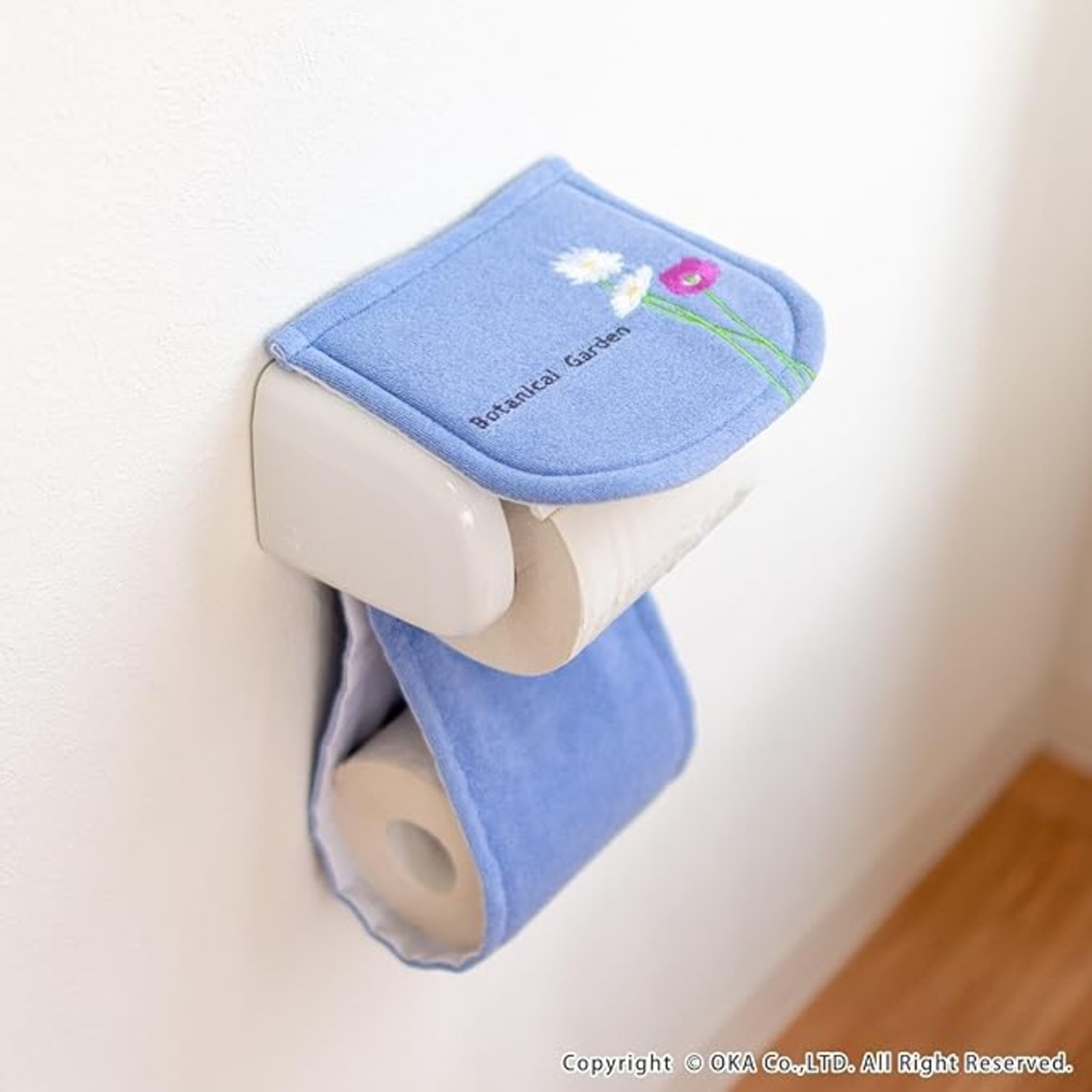 「ボタニカルガーデン」シリーズのホルダーカバー。シンプルなデザインのペーパーホルダーカバーなので触り心地もよく思わず触れてしまいたくなるやわらかさがあります。上部と下部をプラスチックの成形部品でつないで装着します。下部にはトイレットペーパーを1ロールストックしておけます。