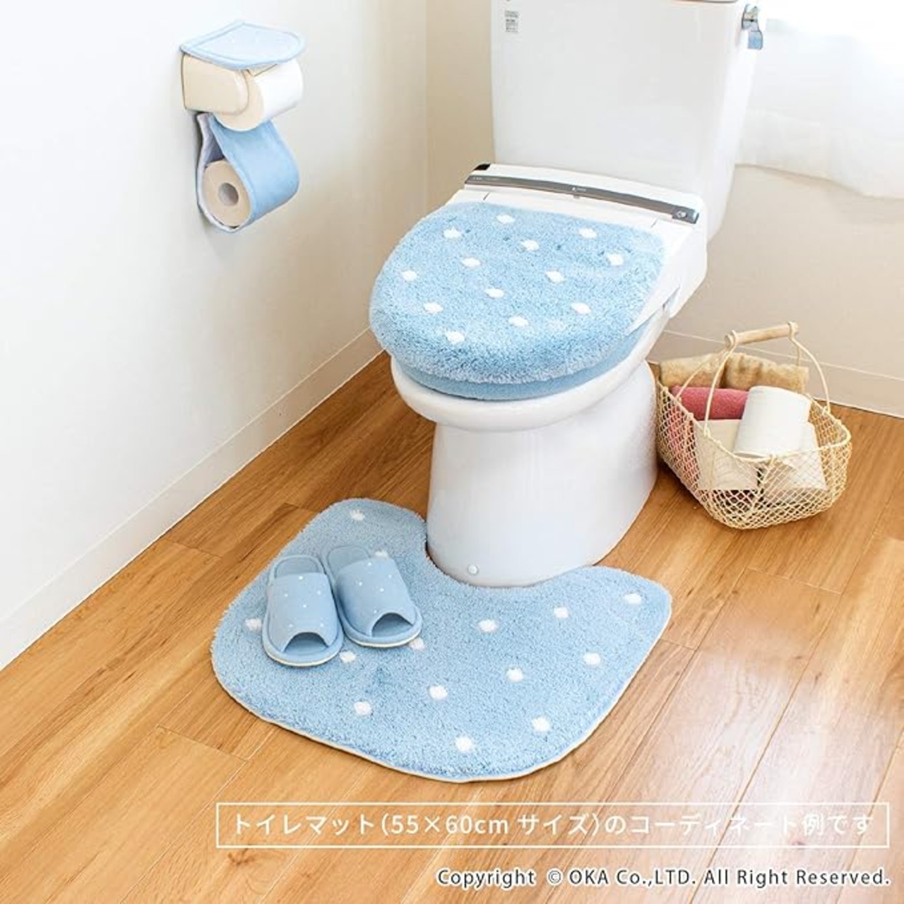 オカ 便座シート ブルー O型専用 ピュアコロン ミュー (水玉 ベーシック)