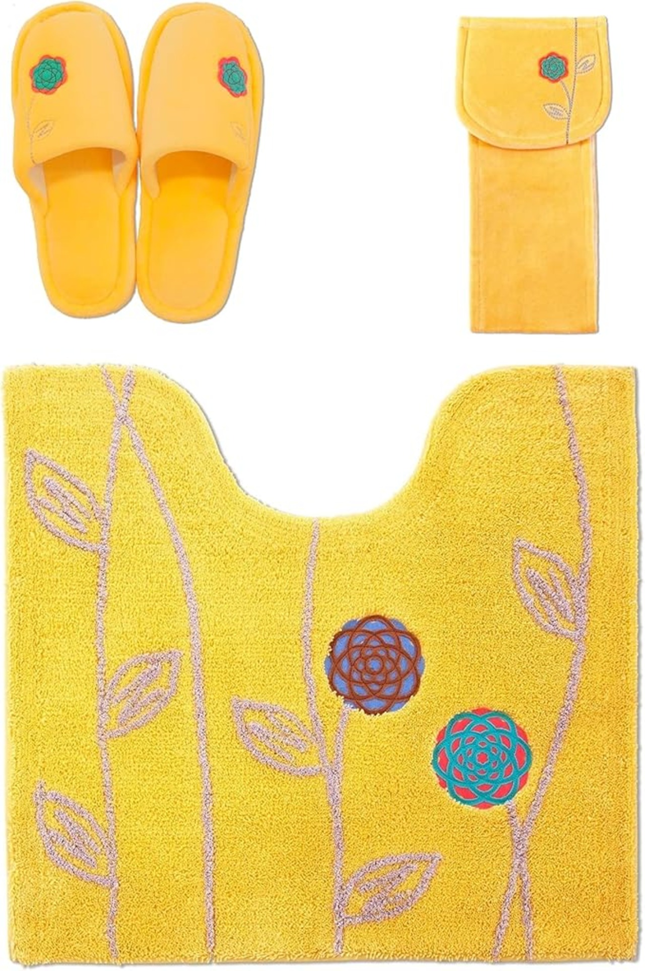 PVD 金運の黄色 トイレマット セット 3点 北欧 (60 64cmトイレマット+ スリッパ + ペーパーホルダーカバー ) オカ エトフ イエロー