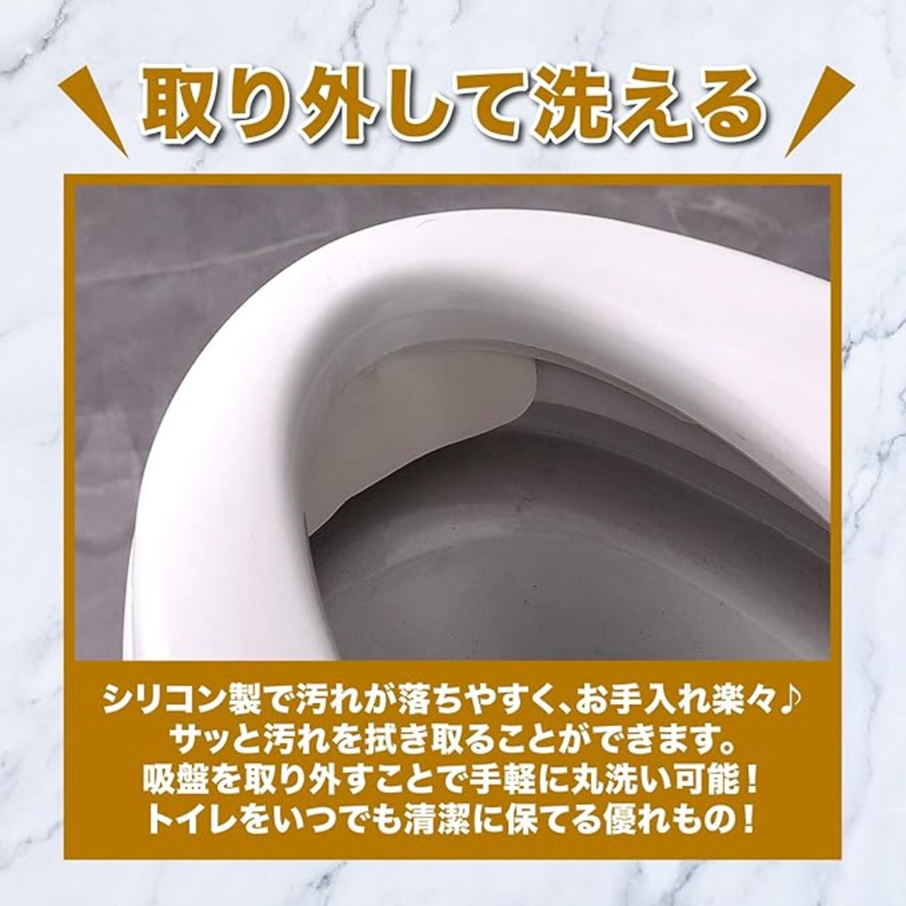 【取り外して洗える】シリコン製で汚れが落ちやすく、お手入れラクラク♪トイレシートでサッと汚れを拭き取ることができます。吸盤を取り外すことで手軽に丸洗い可能!トイレをいつでも清潔に保てる優れもの!