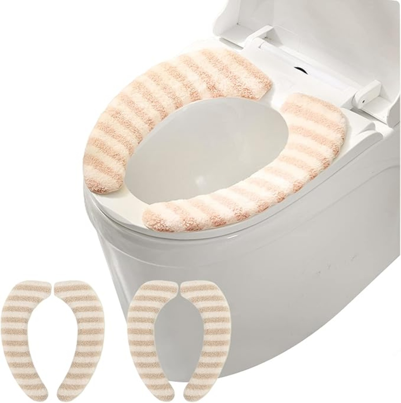 ALLMIRA 便座カバー 2枚入 便座シート 貼るタイプ 温水洗浄便座 o型 u型 洗浄暖房型 トイレ カバー 厚手 ふわふわ 吸着シート ずれない 厚め 暖かい (クリーム入り)