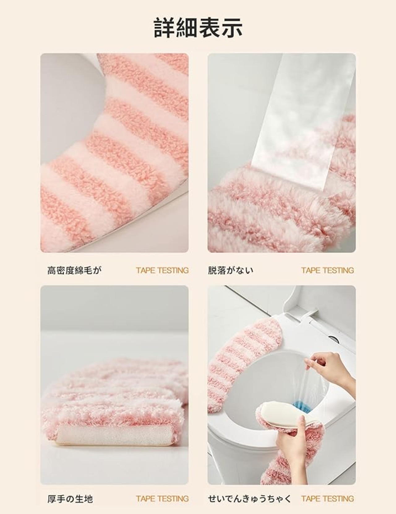 【厚いフリース】ソフトスエード、上に座ると気持ちがよく、冬のトイレは冷たくありません。 【取手付き】猫のしっぽは取手で、便器の蓋を開けるのが便利で、手を汚さない。 【様々なタイプの便器に適しています】私たちの便器マットはU型、O型、任意のタイプの便器座に使用できます。 【水洗い可能】水洗いは色を落とさず、毛を落とさない。繰り返し使用できます。 【取り付けが簡単】ファスナーのデザインは、脱落せず、使いやすく、取り付けが簡単です。