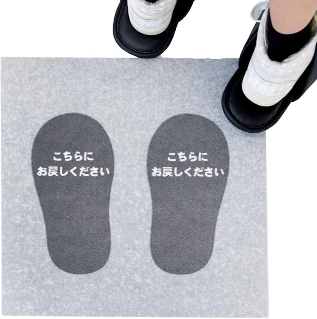 靴底のシルエットと、「こちらにお戻しください」のお願いにより、並べて戻してくれる人が増えることでしょう。