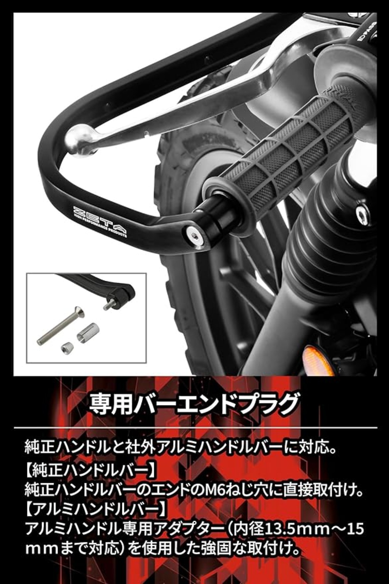 純正ハンドルと社外アルミハンドルバーに対応。