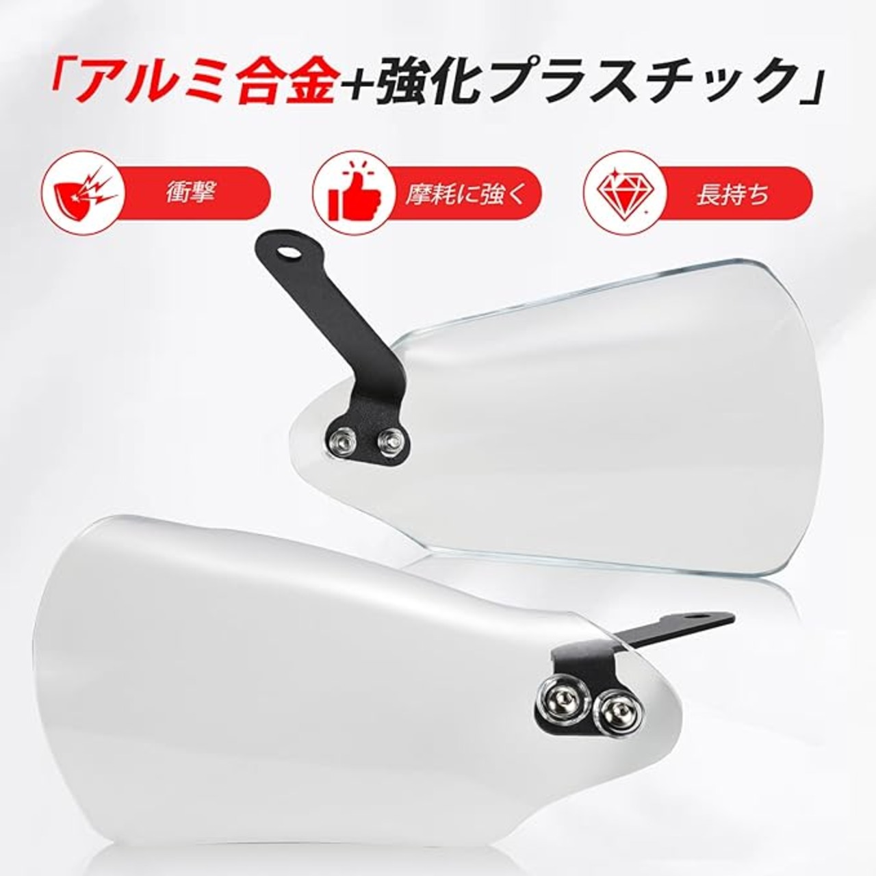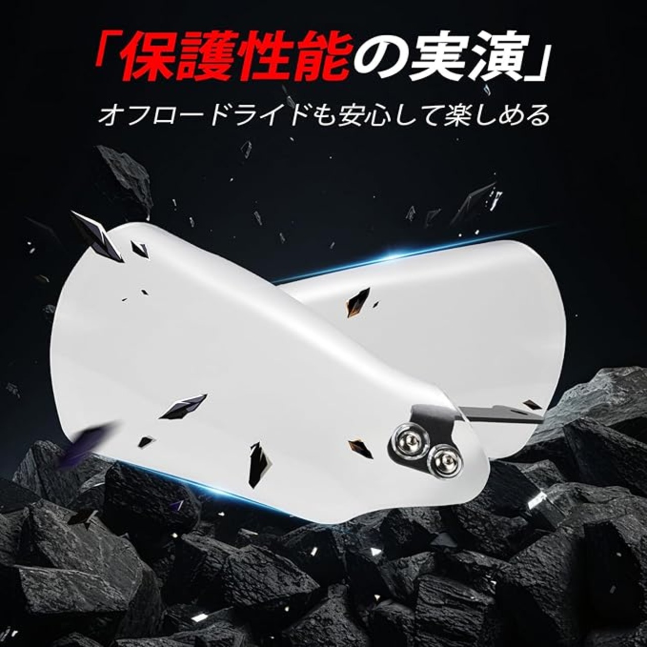【安全防護】走行中の飛び石や枝、泥水から手元を保護。ライダーの安全性と快適性を向上させるバイク用ナックルガードです。