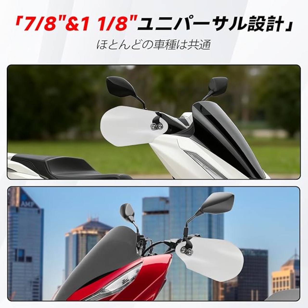 【セット内容】ナックルガード左右ペア+ネジ部品付属。シンプルなデザインで車体にマッチします。