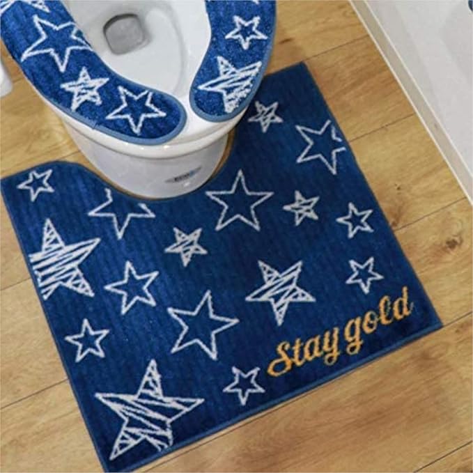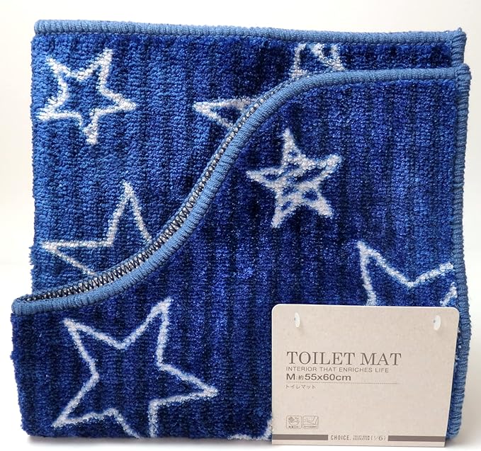 カキウチ トイレマット 縦55cm 横60cm 厚み1cm M ネイビー スターズ 滑り止め付き 丸洗いOK