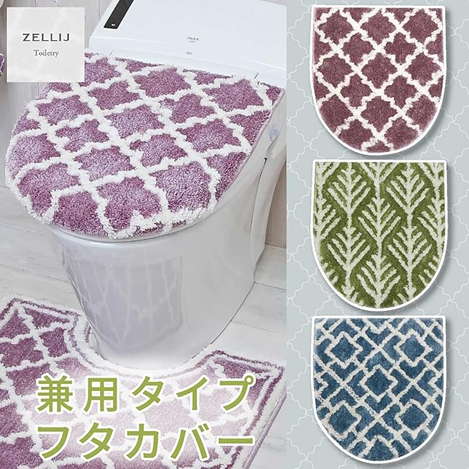 ふっくらと柔らかな糸を高密度に敷き詰め、幾何学柄を毛足の長短で立体的に表現しました。シンプルなデザインと優しい色合いが、どんなトイレ空間にもピッタリです。