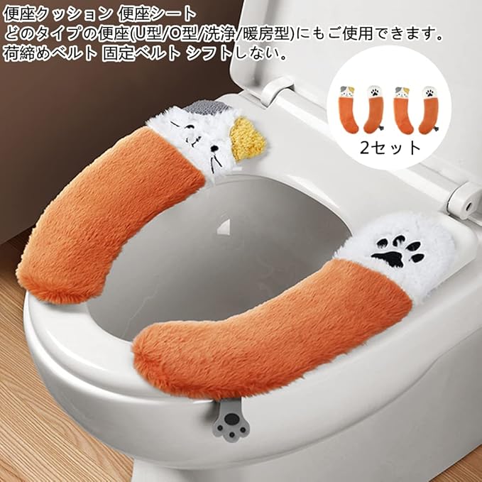 DONGMING 便座クッション 便座シート 便座カバー べんざシート もこふわ タフト生地 抗菌 防臭 U型/O型/洗浄暖房型兼用 洗濯OK 2組入り (オレンジ)