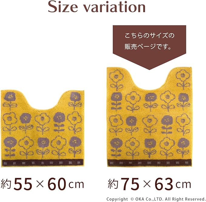 オカ(OKA) ポルク トイレマット 約75cm 63cm イエロー (洗える 花柄 北欧)