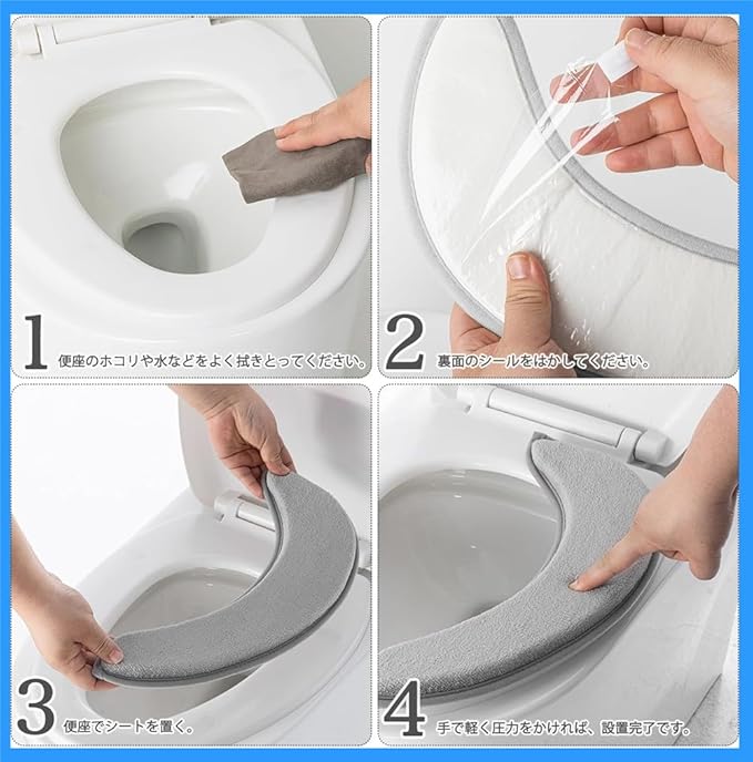 【優れた機能性】貼るだけ:便座にしかっり吸い込まれる素材を採用し、ズレにくい。また粘着成分がありませんので、跡も残りません。手洗いと洗濯機で丸洗いできます。繰り返し洗えても、吸着能力が弱まない。