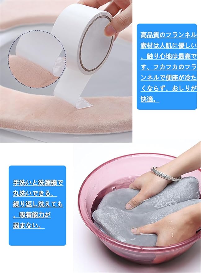 【おすすめのところ】高品質のフランネル素材は人肌に優しい、触り心地は最高です、フカフカのフランネルで便座が冷たくならず、おしりが快適。マシュマロのようなスポンジの厚さは1.5cmまで増え、シート全体は2㎝にレベルアップしました。ちょうどうよくの厚さで便座のふたの開閉も邪魔せず、日常のご使用は簡単で便利です。抗菌防臭加工も施してあるので、嫌なニオイ軽減に有効です。清潔にお使いいただけます。