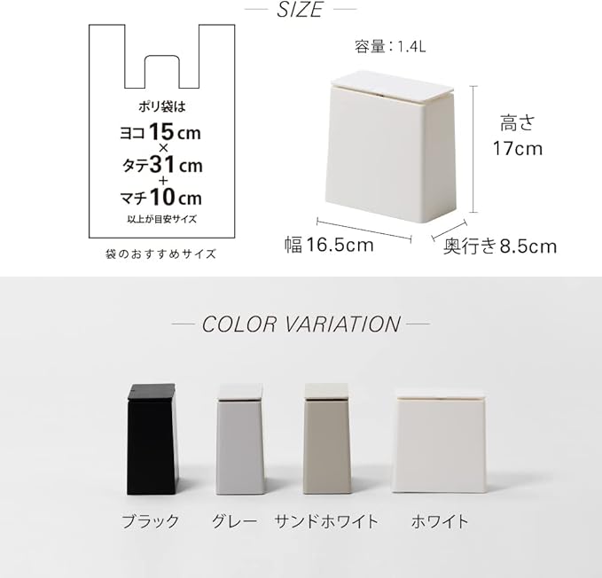 ゴミ袋は縦34 横23cm以上のものが、使い勝手良くご利用いただけます。