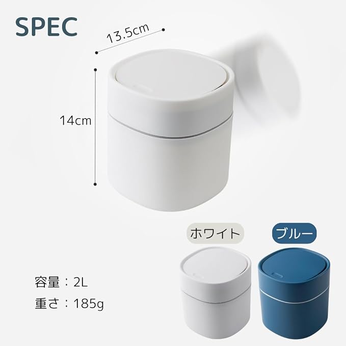 【回転式で使いやすいコンパクトダストボックス】フタを回すだけで簡単にゴミを捨てられる回転式のダストボックスです。フタ付きで中身が見えず匂い漏れも最小限に防ぎ、清潔な空間を保てます。2Lの容量で、小さなスペースにもフィットし、トイレや洗面所、キッチンなど多用途で使用可能。おしゃれなデザインで、インテリアとしても楽しめます。