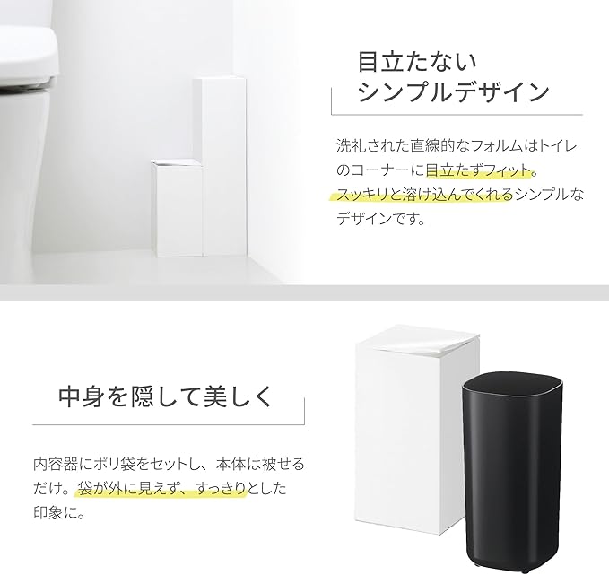 ●セイズ:約 幅10 奥行10 高さ21cm●重量:約370g●内容量:1個●材質:カバー、フタ:ABS樹脂●内容器:ポリプロピレン●カラー:ブラック●生産国:日本製●備考:対応ポリ袋:23 28mm※内容器は各色共通でブラックとなります。