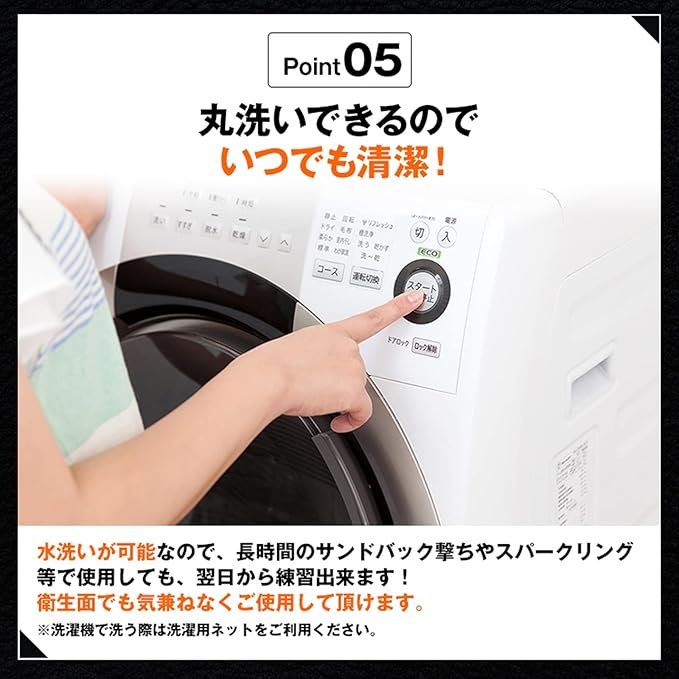 【お手入れ簡単!丸洗い可能】長時間のサンドバック打ちやスパークリング等で汗をかいても、水洗いが可能で、清潔に使用頂けます。※使い始めの頃は染料が出やすくなっておりますので、洗濯の際は分けてご使用ください。