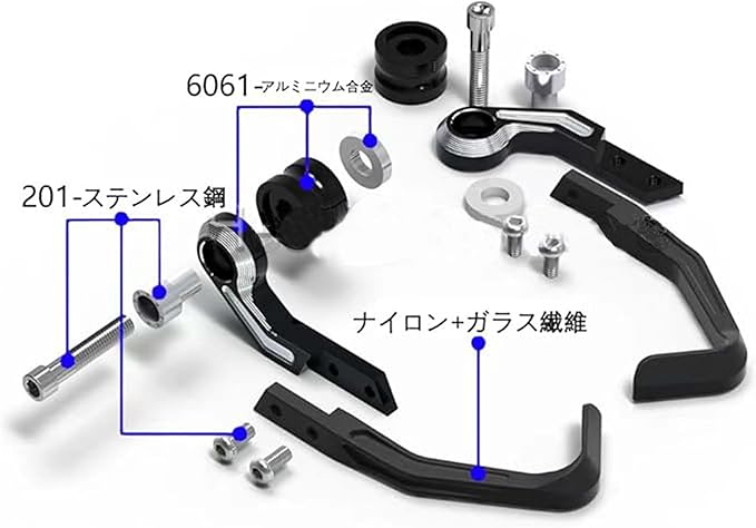 ●カラー説明:チタン。●状態:100%新品。●材質:ステンレス鋼、アルミニウム合金、ナイロン、グラスファイバー。高強度の素材で作られており、長期間にわたる使用に耐えることができます。運転時に手を効果的に保護し、手と指の疲労を軽減します。