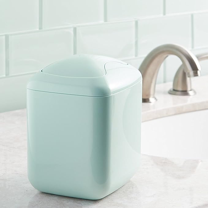 バニティーカウンター用に最適の屑入れ。ティッシュ、綿棒、デンタルフロスなどを捨てるのに便利