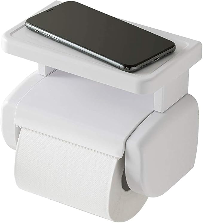 オーエ ペーパーホルダー 白 縦10.2 横17.4 高さ14.5cm トイレ 棚付き ウェイト式 重り式 かんたん片手カット 簡単取り付け