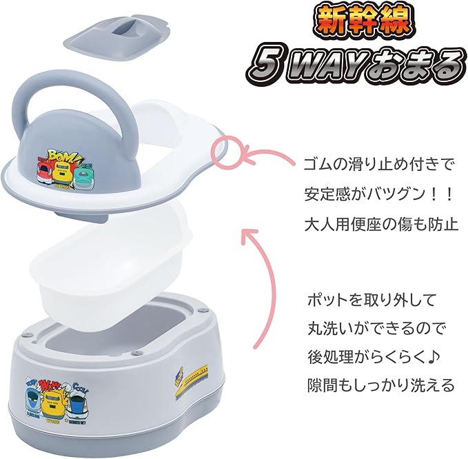 永和 新幹線 5WAY おまる ベビー トイレトレーニング おまる・補助便座 おしっこガード 飛び散り防ぐ 滑り止め 丸洗い ステップ台 成長に合わせて ポット付き