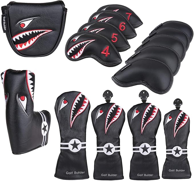 ゴルフヘッドカバー ウッド用 ドライバー440cc 460cc用 ユーティリティ UT用 パターカバー マレット用 ピンタイプ用 アイアンカバー 防水仕様 サメ模様 変換ダグ付 単品