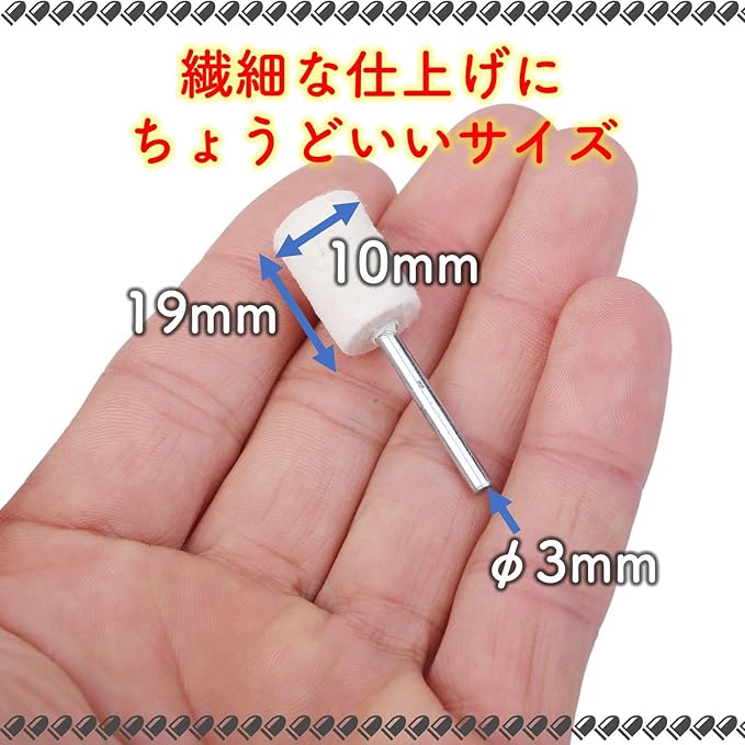 各種仕上げに!3mm軸付き円柱型フエルトバフ(10mm)50本セットです。