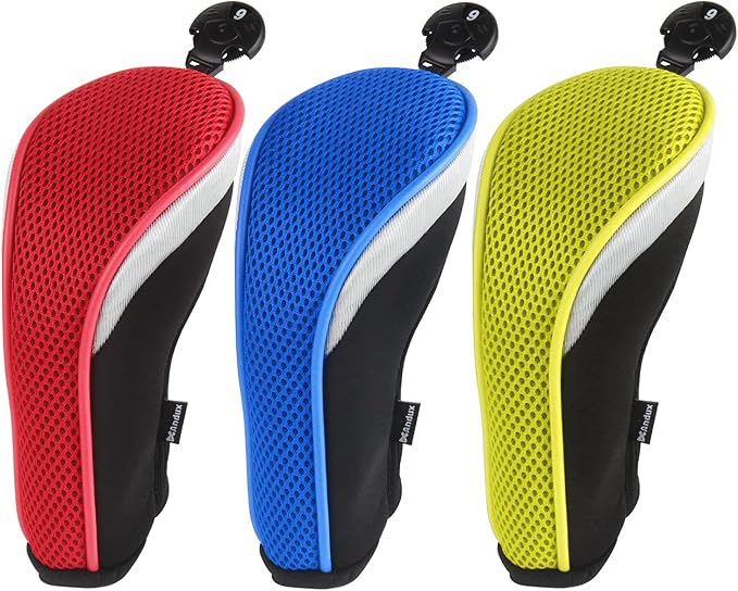 Andux ゴルフ ハイブリッド クラブヘッドカバー 交換可能な番号タグ付き 3個セット (マルチカラー)