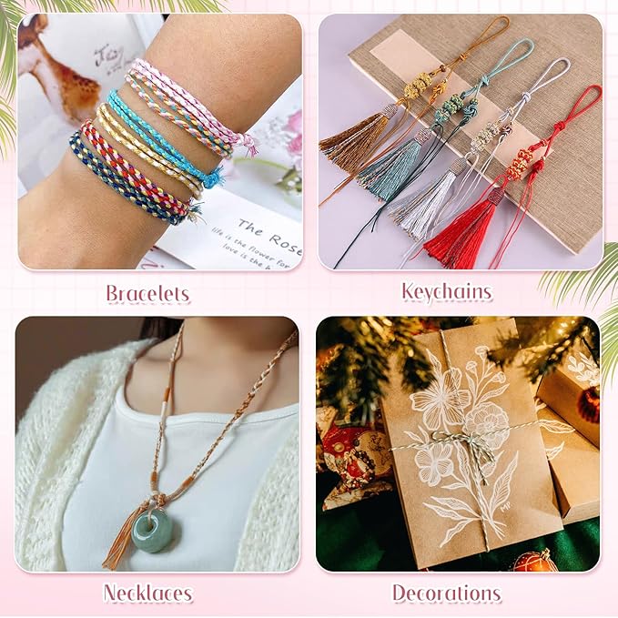 【幅広い用途】:大人気の手芸コード!作り方、使い方は色々!壁掛け装飾、夢キャッチャー、吊り下げ植物ハンガー、マクラメタペストリー、バッグ、アクセサリー、インテリアのボヘミアン飾りなど、様々の手編みプロジェクトに適しています。園芸の縄としてもお使いいただけます