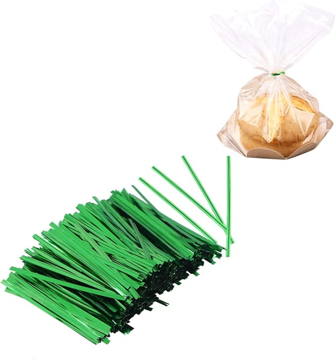 BESTOYARD ラッピングタイ ワイヤータイ ビニタイ メタリック 無地 キャンディー プレゼント用 結束 梱包 包装用品 10cm 800本セット(緑)
