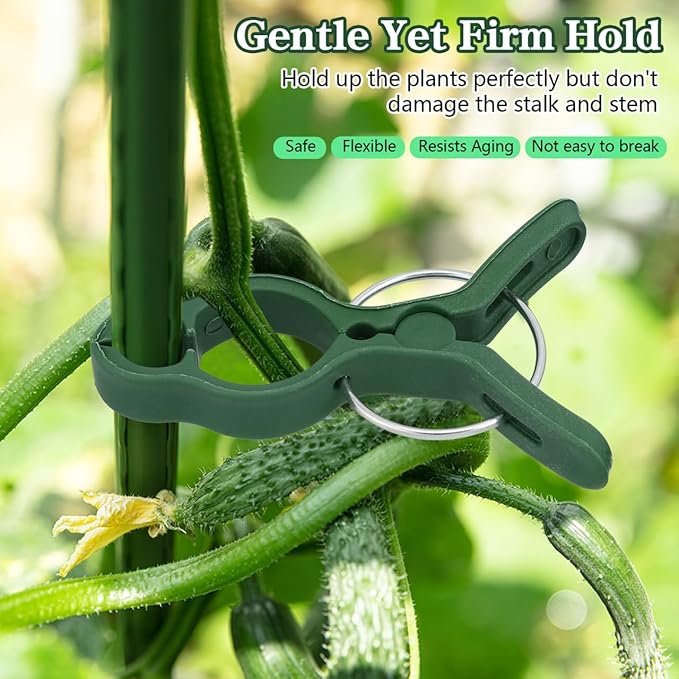 EXCEART 園芸クリップ 50個誘引クリップ 茎サポート 園芸小物 植物直立 胡蝶蘭 トマト 緑色 7.5cm Lサイズ 魚のクランプ形状 茎直立 結束バンド 突風・大雨対策 農業用 園芸用 家庭菜園 温室 ガーデニング 緑の日