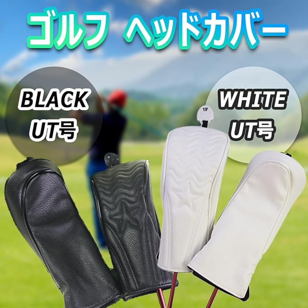 "【ゴルフ ヘッドカバー UT用】PUレザー製でユーティリティクラブのヘッドを保護しながら、スタイリッシュなデザイン。防水機能付きで雨天でも安心して使用可能 【変換タグ付き】U2、U3、U4、U5、U6、UXの番手タグが付属し、クラブに合わせて簡単に調整可能 【2色展開・セット販売】ホワイト、ブラックの2色展開で、1個セットと2個セットを選択可能 【耐久性抜群】高品質PUレザーとポリエステル裏地で耐久性と快適性を両立 【簡単着脱】大きめの開口部で、取り付け・取り外しがスムーズ"