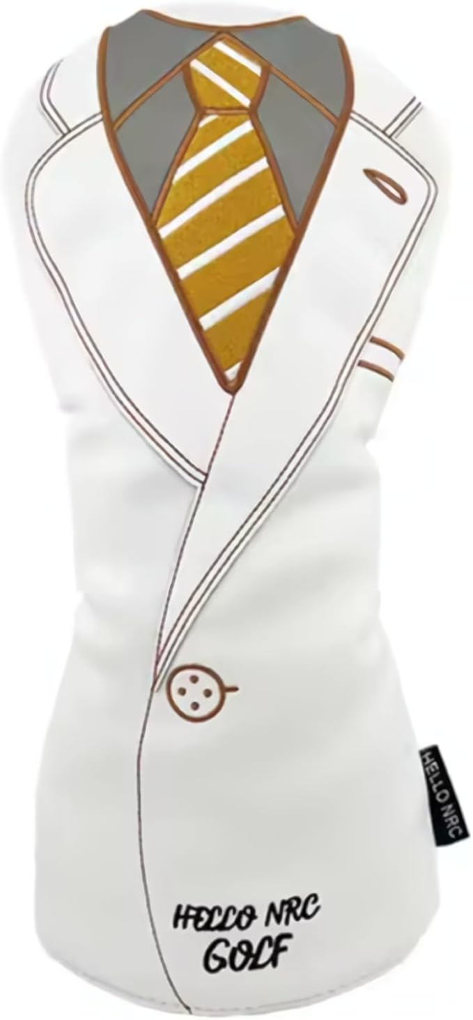 【スーツデザインで遊び心あるラウンドに】フォーマルなタキシード風デザインが目を引く、ユニークなゴルフヘッドカバー。ラウンド中の話題作りにもぴったり!