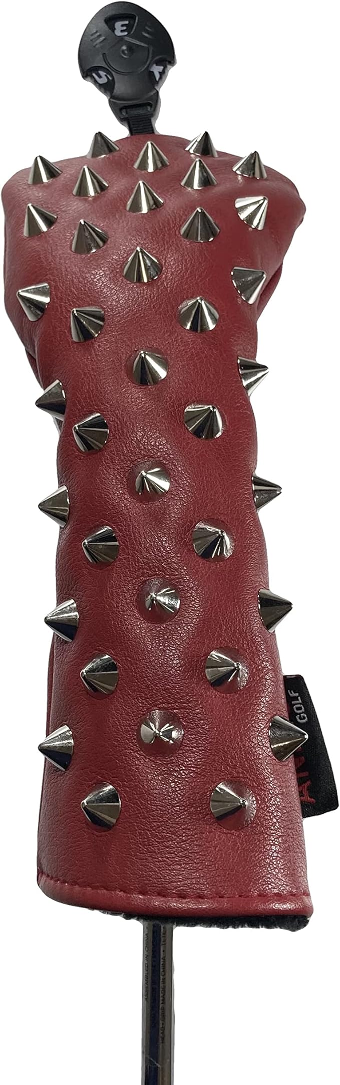 :スタッズ付きユーティリティ用ヘッドカバー2個セット:合皮素材で雨にも強く、中のボア素材でしっかりクラブを保護できます。:便利なダイヤル式番手表示付き(3.4.5.7.X表示)