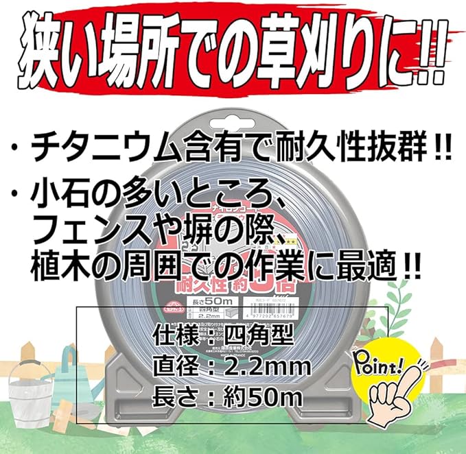 セフティー3(Safety-3) 草刈・刈払機用 耐久性約5倍 チタニウムナイロンコード 50m 四角型 2.2mm径