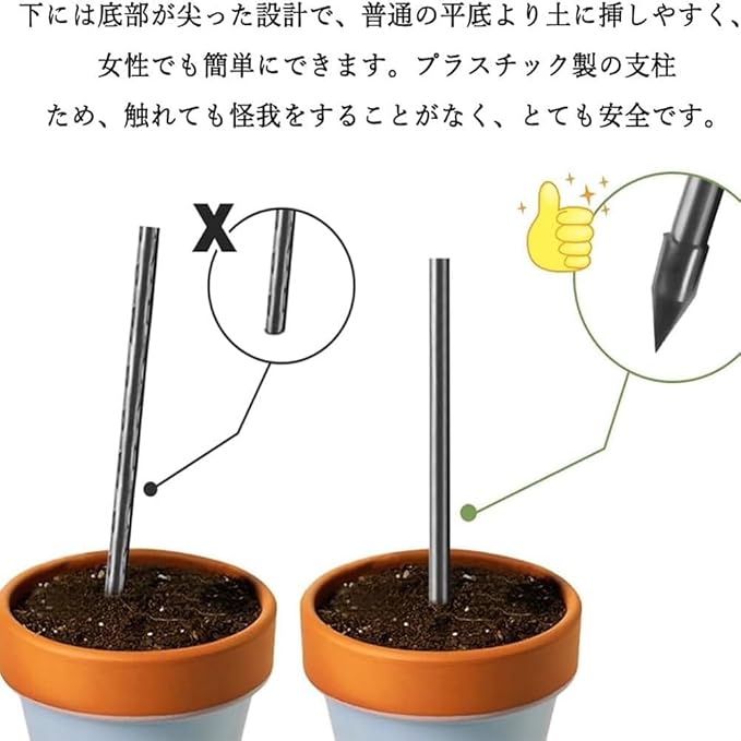 【高品質&安全】ポリエチレン被覆鋼管製なので、強度が優れています。プラスチックで覆われたステンレスのため、安定感があるで、錆びにくいで、永くご使用いただけます。中空なので、軽くて、下には底部が尖った設計で、普通の平底より土に挿しやすく、女性でも簡単にできます。
