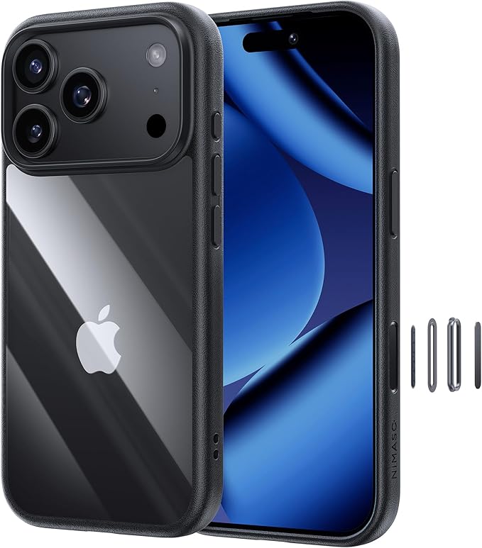 NIMASO iPhone 17 Pro Max 用 ケース クリア 黄変防止 耐衝撃 米軍MIL規格 SGS認証 PC背面 カメラコントロールカバー付き いPhone17 Pro Max対応 傷つけ防止 超薄型 軽量 ワイヤレス充電対応 ストラップホール付き アイフォン 17 プロマックス対応(6.9インチ)スマホケース ブラック (氷星シリーズ)NSC25F1664