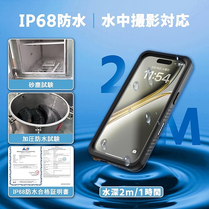 【IP68完全防水防塵】お風呂・海・登山でも安心!iPhone 17 Pro Max 用の完全防水防塵ケース。水深2m/1時間のテストをクリアし、お風呂、温泉、海、スキー、登山など、あらゆるシーンで安心してご使用いただけます。水中撮影も可能で、思い出を逃しません!