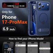iPhone 17 Pro Max ケース [ガラスフィルム・スタンド機能・MagSafe対応] いphone17promax ケース Hensinple 半透明 縦横両対応 調整可能 隠しスタンド 全面保護 耐衝撃 アイホン17プロマックスカバー 指紋防止 マグネット搭載 マグセーフ対応 ストラップホール付き iPhone 17 Pro Max スマホケース 6.9インチ用 ブルー