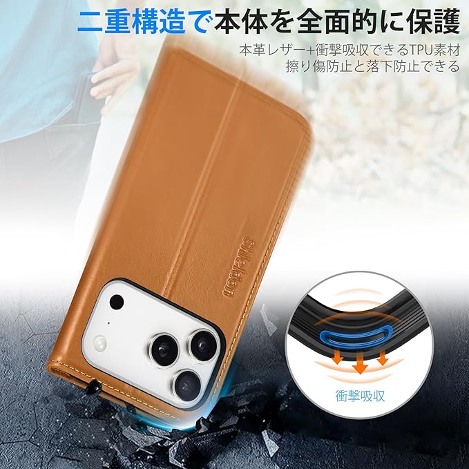 SHIELDON iPhone 17ProMax 対応 手帳型ケース 本革レザー 6.9インチ 5G TPU素材 カード収納 [RFIDブロッキング] 横置きスタンド機能 マグネット内蔵 ストラップ穴付き 衝撃吸収 あいふぉん 17プロマックス 対応 スマホケース 2025年発売 レトロライトブラウン