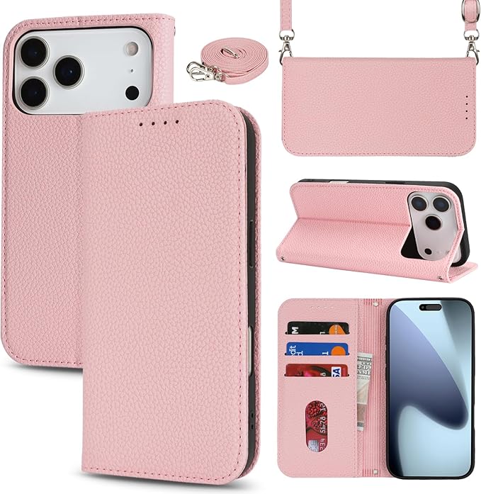 【Hamany】 対応 iphone 17 pro max ケース 手帳型 ショルダー アイホン17プロマックスケース スマホストラップ カード収納 財布型 スタンド機能 スマホケース いphone 17promax マグネット式 女性 肩がけ 首掛け 斜め掛け ショルダーバッグ 携帯カバー -ピンク