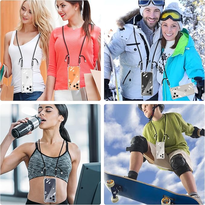 iPhone 17 Pro Max 用 ケース クリア ショルダー iphone17pro max 用 スマホケース アイフォン17ProMax カバー 肩掛け 斜めかけ 縄掛け 透明 TPU 薄型 軽量 耐衝撃 ケース 紐付き 斜めがけ 織りストラップ付き ネックストラップ ショルダー 縦/横 2WAY 長さ調整可能 取り外し可能 落下防止 紛失防止 ワイヤレス充電対応 (クリア)